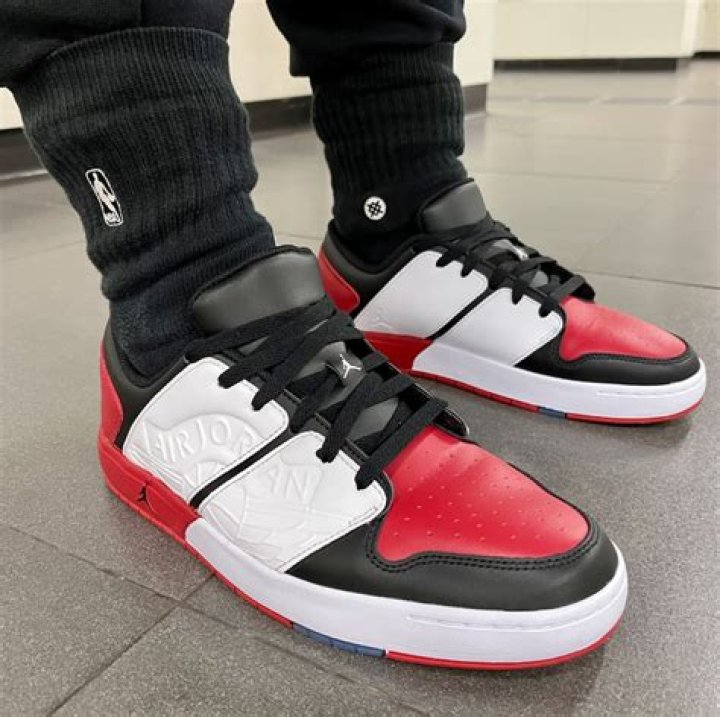 The sneakers feature a red rubber sole with a clean white midsole that has a black Jumpman on it. The upper is white leather with red leather overlays and large white panels with an imprinted Wings logo. The laces are black and match the sock liner. Jordan branding can be found on the lace holder and on the insoles. Overall, this is a great sneaker option for those looking for a more economic purchase. It still has all the core features of the great Air Jordan 1 Low, but with a few changes.